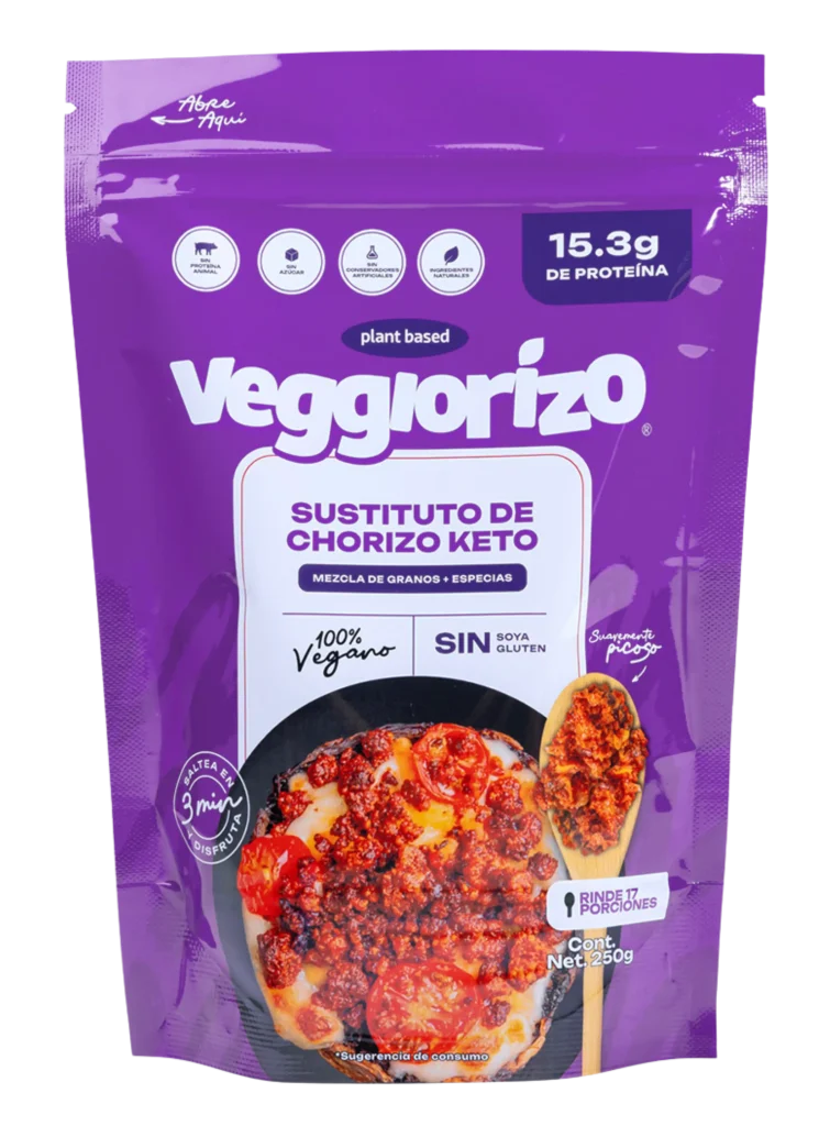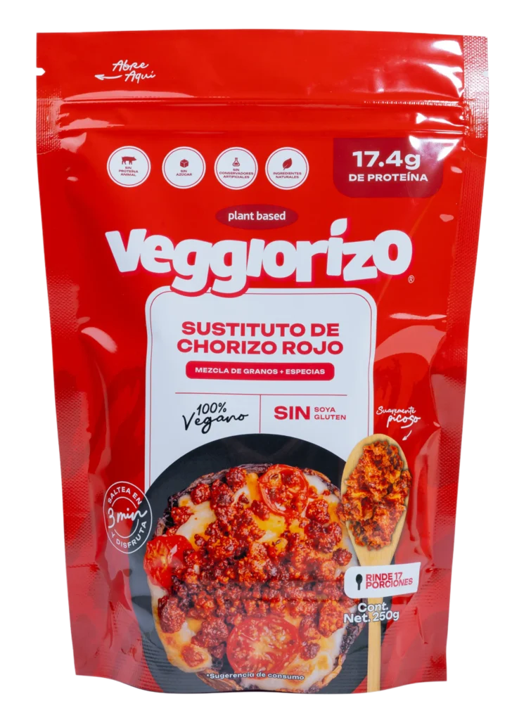 Veggiorizo Rojo es la forma más fácil de darle un toque picante y lleno de proteína a tus platillos, sin preocuparte por colesterol, exceso de grasa o conservadores. Su mezcla de semillas y especias está pensada para aportar sabor y nutrientes de forma ligera y deliciosa. Prepáralo en minutos y disfrútalo en tacos, quesadillas o desayunos energéticos.